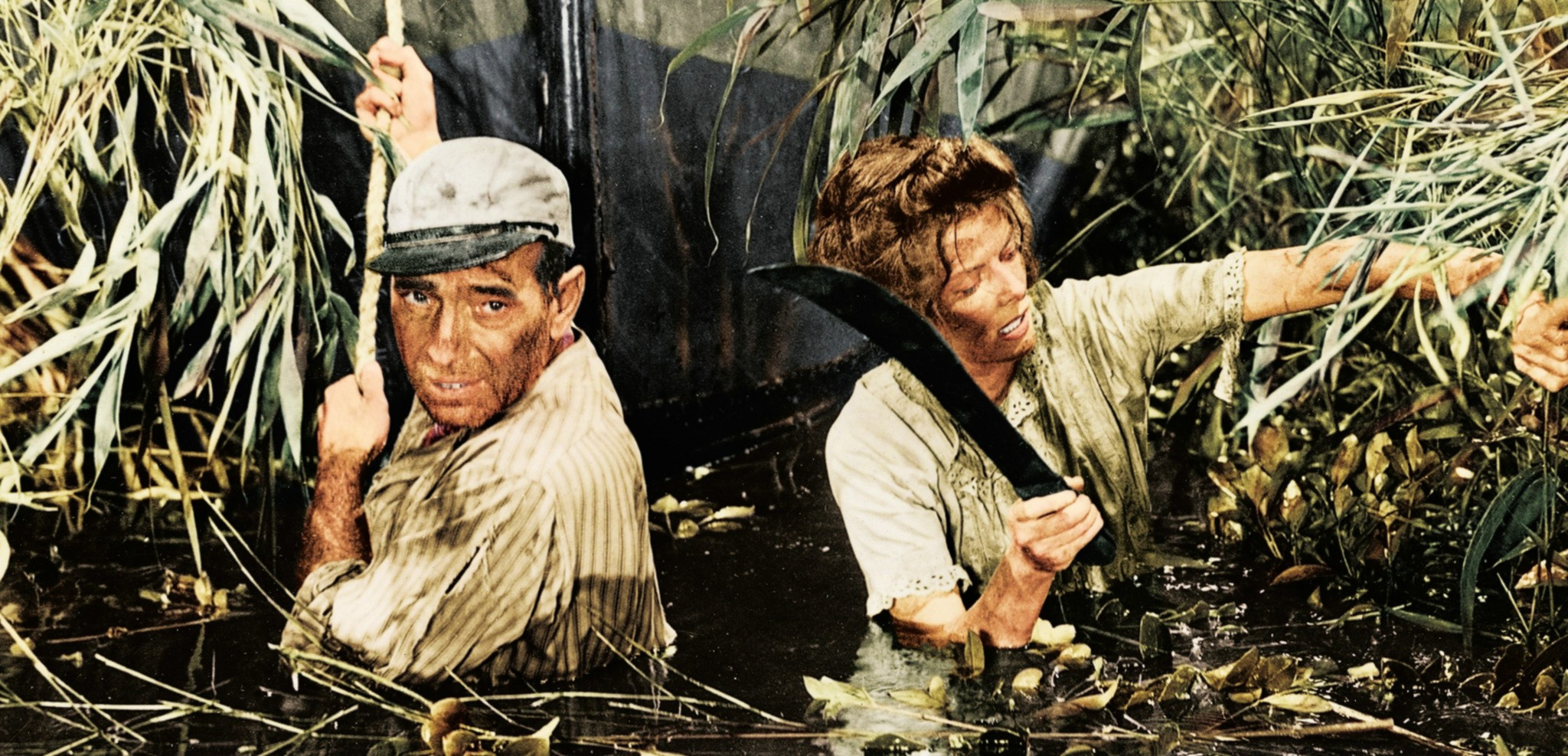 Starring Humphrey Bogart, Katharine Hepburn, Robert Morley with Peter Bull and Walter Gotell