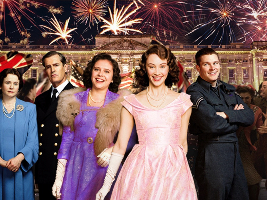 Princesses Elizabeth and Margaret celebrate VE day with thousands of people in London.